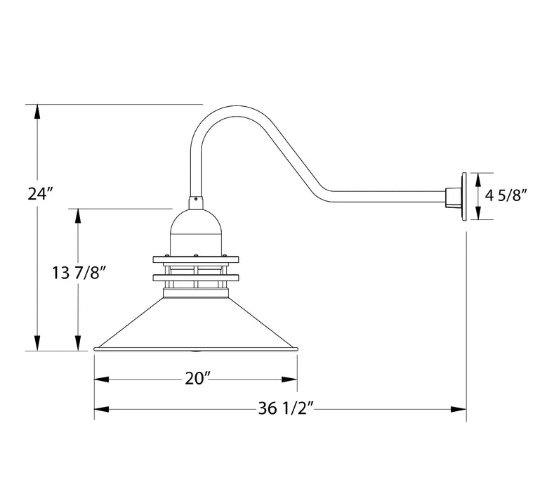20" Atomic shade, gooseneck wall mount, Architectural Bronze