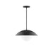 16" Plateau Half Dome Pendant with 6" White Opal Glass Globe, white cord with canopy, Black