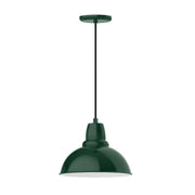 12" Cafe shade, pendant with white solid fabric cord and canopy, wire grill, Forest Green