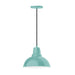 12" Cafe shade, pendant with polished copper fabric cord and canopy, clear glass and cast guard, Sea Green
