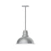 14" LED Cafe shade, pendant with neutral argyle fabric cord and canopy, Painted Galvanized
