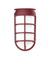 14" Cafe shade, pendant with cool tweed fabric cord and canopy, Frosted Glass and cast guard, Barn Red