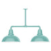 16" Cafe shade, 2-light stem hung pendant, Sea Green