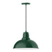 16" Cafe shade, pendant with white solid fabric cord and canopy, Frosted Glass and cast guard, Forest Green