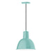 12" Deep Bowl shade, pendant with gray solid fabric cord and canopy, Frosted Glass and cast guard, Sea Green
