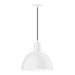 16" LED Deep Bowl shade, pendant with black cord and canopy, wire grill, White