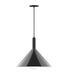 18" Chase Cone Pendant with 6" White Opal Glass Globe, white and gray dot fabric cord with canopy, Black