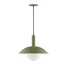16" Glow Half Dome Pendant with 6" White Opal Glass Globe, cool tweed fabric cord with canopy, Fern Green