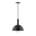 12" Ray Dome Pendant with 6" White Opal Glass Globe, black fabric cord with canopy, Black