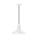 12" LED Warehouse shade, pendant with black solid fabric cord and canopy, White