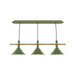 Raceway 2-Light Linear Chandelier in Fern Green with Brushed Brass Accents